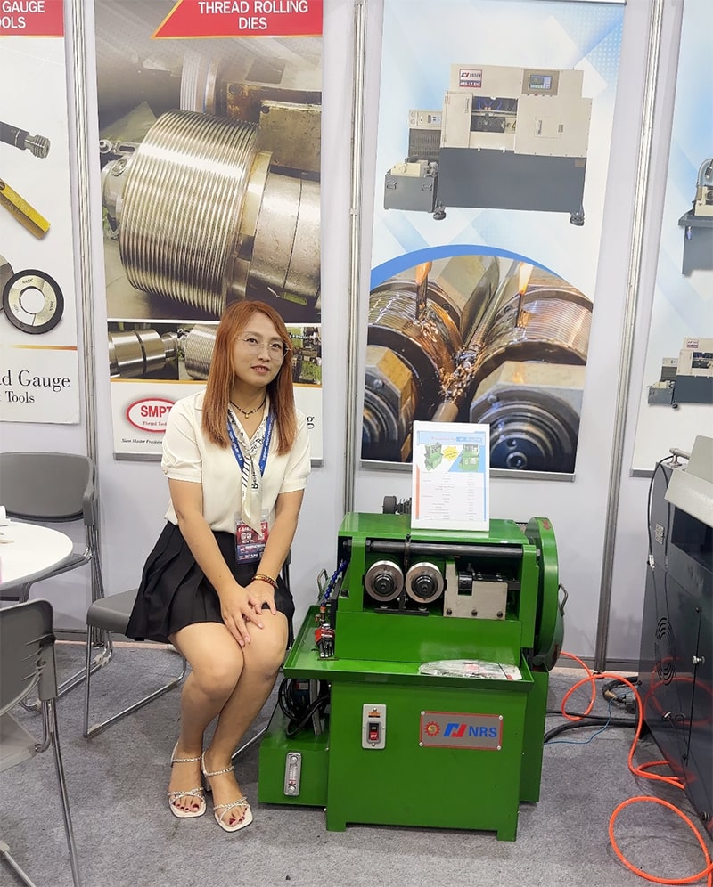 Thanks to the trust and cooperation of Mr. Thanapath of Thailand, our company full- automatic thread rolling machine and mechanical machine 3T thread rolling machine were exhibited at the 2025 Thailand Industry Exhibition. There were a lot of people watching the exhibition, and many guests are very interested in our automatic thread rolling machine, especially the automatic feeder, which is really a good helper to save labor. The automatic feeder not only has fast feeding speed, accurate positioning, but also more stability, and the product accuracy is higher.